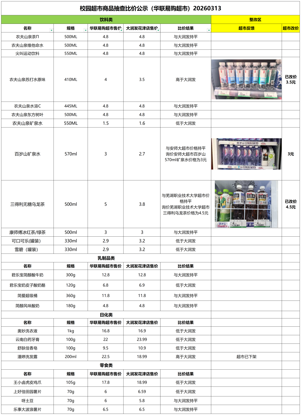 3月第1周校园超市比价结果公示